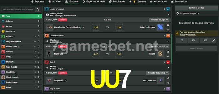 O UU7 oferece uma grande seleção de opções de apostas em e-sports com probabilidades competitivas